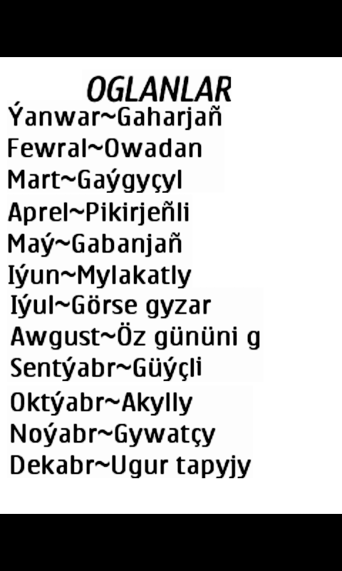 - Bezzat. o 3nji suraty oka gaýtadan jannogon. ol ýerde "size nähili oglan ýaraýar" diyya. ýagny gyzlaryñ hasiyeti berlenokda, şo aýda doglan gyzlaryñ nähili oglany halaýanlygyny aýtýa ol.